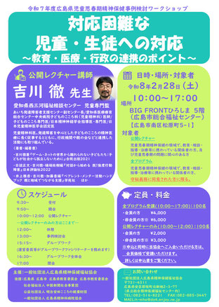 【2/28開催】令和7年度広島県児童思春期精神保健事例検討ワークショップ 参加申込フォーム